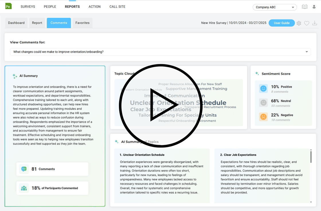 Get ready—on August 4th our enhanced Comment Analytics experience goes live! Transform the way you understand feedback with AI‑generated summaries, dynamic topic insights, and powerful sentiment analysis—all working together for clearer, faster answers. Powered by a large language model and natural language processing, these capabilities surface the meaning behind your feedback and turn it into clear, actionable insights at a glance.